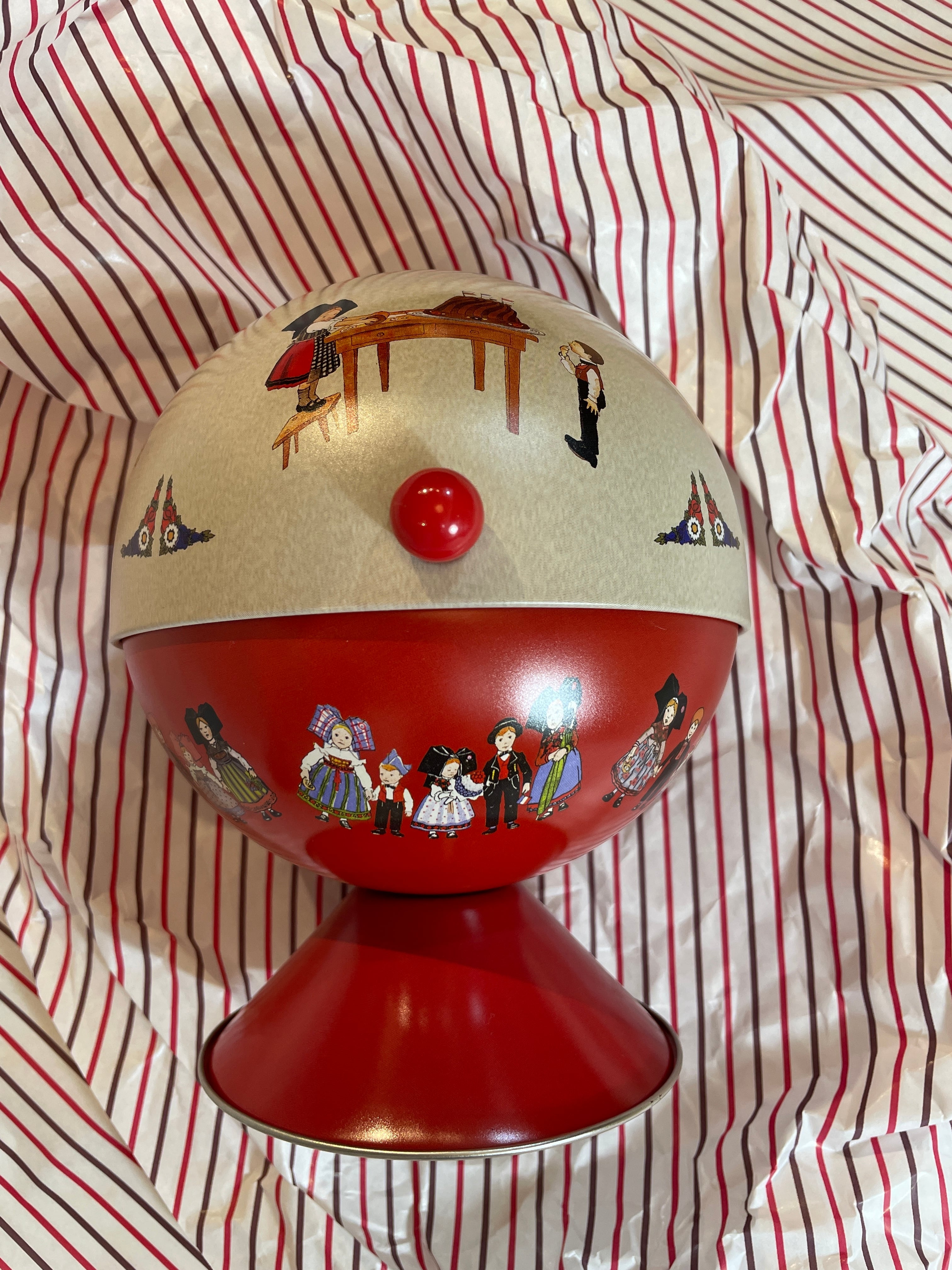 アルザスで有名な画家 Hansiのイラストがプリントされたブリキ缶です