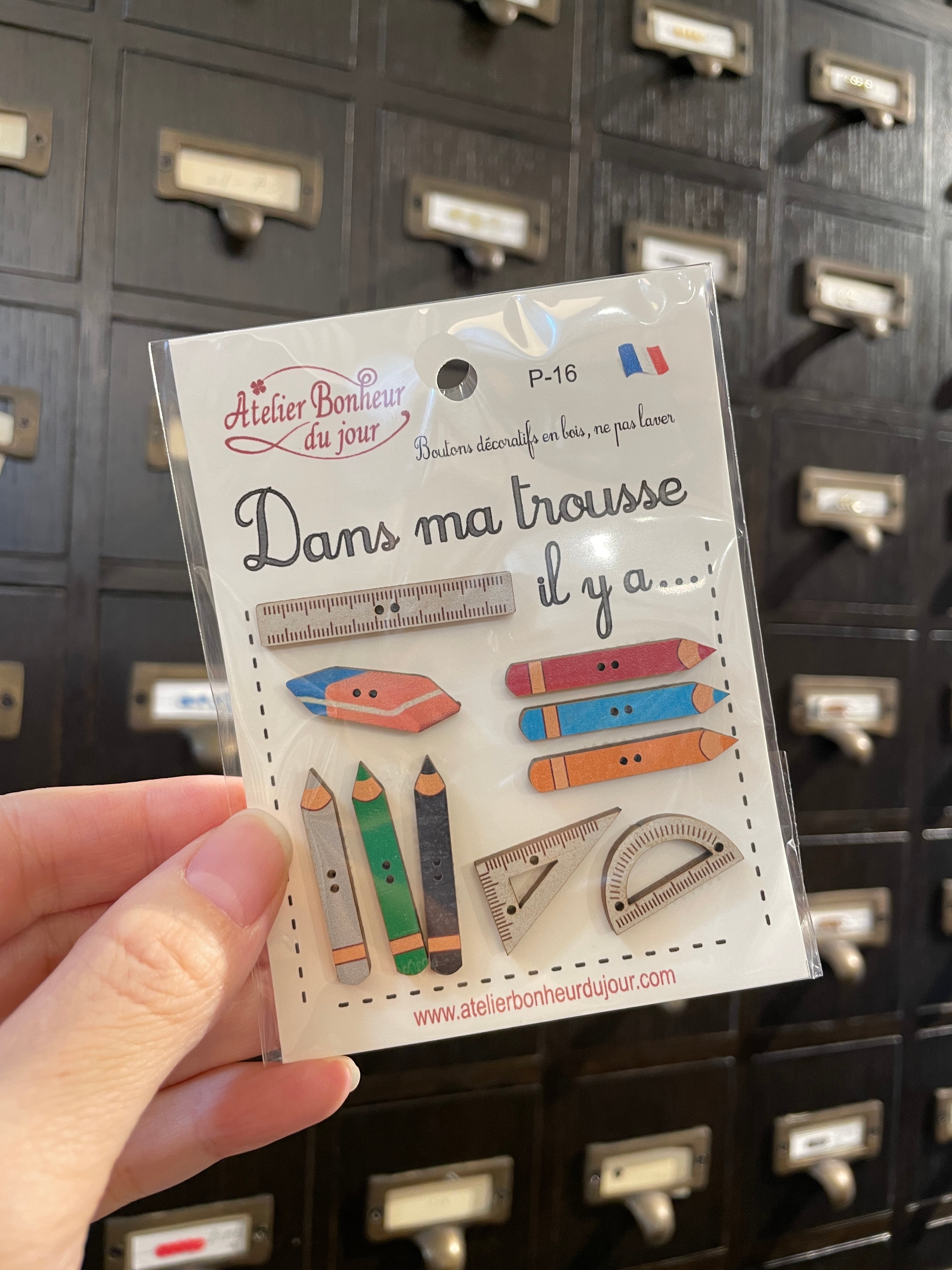 フランス製 木製ボタンセット 【私の筆箱の中身は】